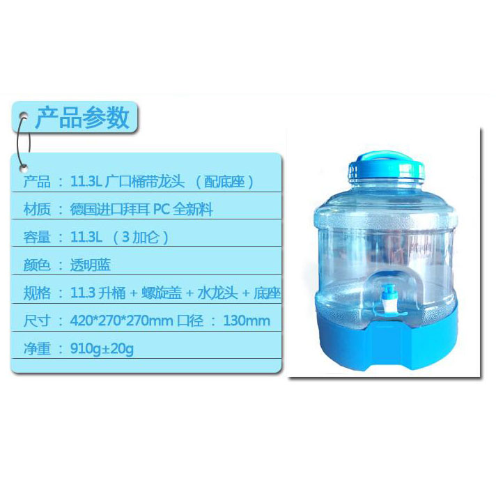 型號:大口食品級3加侖PC水桶帶水龍頭。