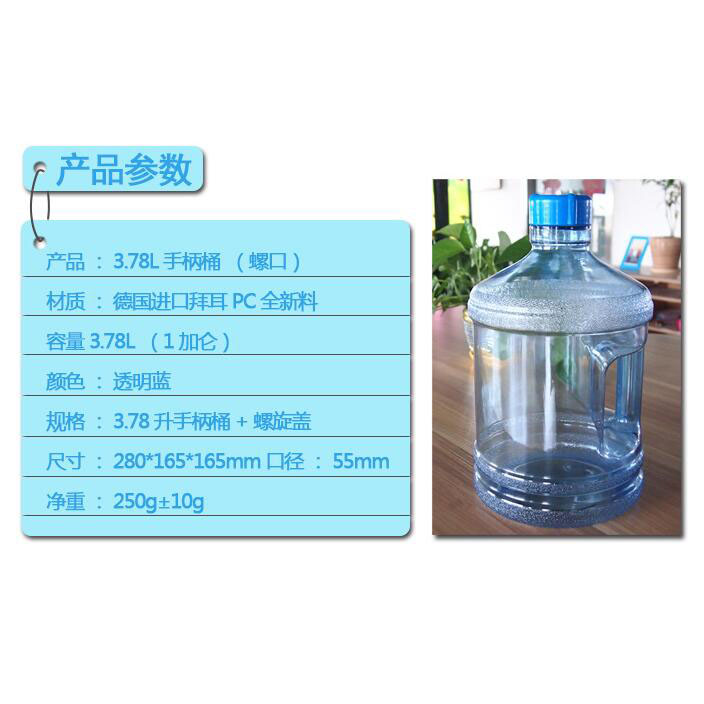 型號:1加侖PC飲用水桶帶手柄,配螺紋蓋子。1箱30個。850ML水杯一箱50個。